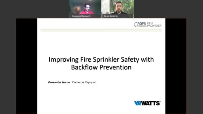 This webinar, hosted by Cameron Rapoport, our Backflow Product Specialist, covers the operation of a reduced pressure zone backflow preventer and basic root cause analysis of a discharging one, as well as how to determine worst case discharge.